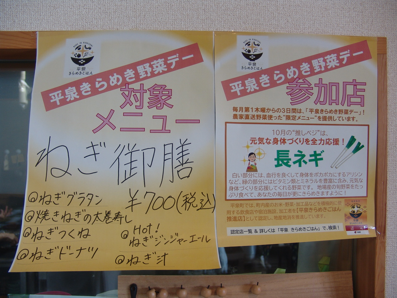 平泉では月に一回、平泉町内産の同一野菜を使った各お店のオリジナルメニューを提供するイベント「 平泉きらめき野菜デー」が開催されます。